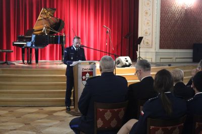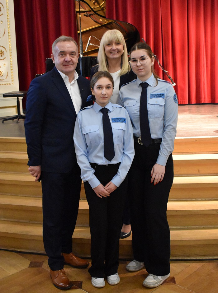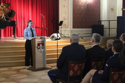 Zespół Szkół Technicznych i Licealnych w Żaganiu reprezentowali na gali pan Dyrektor Zbigniew Stebelski, pani Sylwia Woroniec oraz uczennice kl. 2 LP – Natalia Świec i Julia Jaskólska. Część konferencyjna tej uroczystości była poświęcona historii kobiet, które już od 100-lat pełnią służbę w polskiej Policji. W tej części gali nasze uczennice zaprezentowały życiorys warszawskiej policjantki, która pełniła służbę w przedwojennej Polsce.