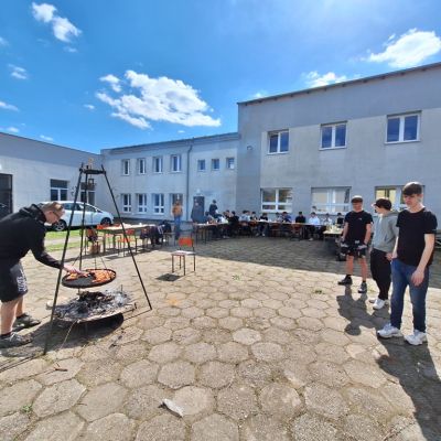 W czwartek 13.04.2024r. na terenie warsztatów szkolonych, klasy IA i IMB, przy kiełbasce z grilla, miały okazję do integracji międzyklasowej, której celem miała być wymiana doświadczeń i spostrzeżeń związana z tematyką mechaniczną, realizowaną na zajęciach z przedmiotów zawodowych i zajęć praktycznych. Całe wydarzenie odbywało się pod bacznym okiem opiekunów grup i klasy, tj. pana Tomasza Wypaska, pana Pawła Chylaka oraz pana Janusza Kopća. Czas upłynął pod kątem merytorycznych rozmów, pytań i odpowiedzi.