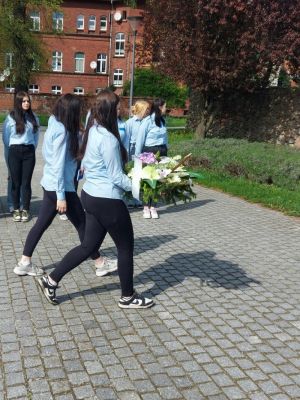 W piątek, 12 kwietnia uczniowie klasy policyjnej uczestniczyli w szczególnej lekcji w terenie, którą przygotowały dwie uczennice kl. I LP: Roksana Szpalerska i Julia Jaskólska. Podczas uroczystej zbiórki na pl. gen. Maczka, w obecności całej klasy uczennice złożyły wiązankę kwiatów pod Dębem Pamięci i tablicą upamiętniającą aspiranta Teodora Fabisiaka, funkcjonariusza Policji Państwowej, który w kwietniu 1940 roku został zamordowany przez NKWD w Kalininie (Twerze) i spoczywa na Polskim Cmentarzu Wojennym w Miednoje – największej na świecie policyjnej nekropolii ( pochowanych jest tam prawie 6 tysięcy polskich policjantów – ofiar Zbrodni Katyńskiej). Uczennice przygotowały i odczytały na zbiórce biogram aspiranta Teodora Fabisiaka.