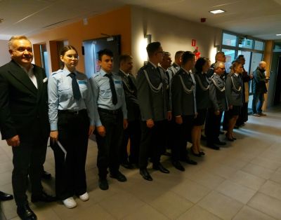 W uroczystości, która odbyła się 24 kwietnia w siedzibie Komendy Powiatowej Policji w Żaganiu wzięli udział żagańscy policjanci, Dyrektor Oddziału Instytutu Pamięci Narodowej, przedstawiciele innych służb mundurowych, samorządów lokalnych i klas mundurowych. Naszą szkołę reprezentowali Dyrektor ZSTiL w Żaganiu pan Zbigniew Stebelski, nauczycielka edukacji policyjnej pani Sylwia Woroniec oraz uczniowie klasy 1LP Natalia Świec i Erwin Tomaszewski. Nasi uczniowie przed odsłonięciem tablicy pamiątkowej przybliżyli uczestnikom uroczystości genezę Zbrodni Katyńskiej oraz życiorys aspiranta Teodora Fabisiaka, który wiosną 1940 roku został zamordowany przez NKWD w Twerze. W Twerze zamordowano ponad 6 tysięcy policjantów, których ciała zakopywano w zbiorowych dołach śmieci w Miednoje.