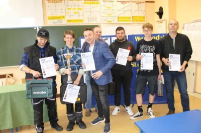 W dniu 12.04.2024r. Vlsdyslav Holiak (klasa IA) i Kasper Engelmajer (klasa IIA), uczniowie branżowych klas mechanicznych Zespołu Szkół Technicznych i Licealnych w Żaganiu, wywalczyli Puchar Drużynowy za zajęcie pierwszego miejsca w 23 edycji „WOJEWÓDZKIEGO KONKURSU O TYTUŁ NAJLEPSZEGO ŚLUSARZA ZIEMI LUBUSKIEJ” organizowany przez Zespół Szkół Technicznych i Branżowych w Szprotawie. Do rywalizacji przystąpiło sześć dwuosobowych drużyn z szkół zgłoszonych do konkursu z województwa lubuskiego. Drugie miejsce przypadło Zespołowi Szkół Technicznych i Branżowych