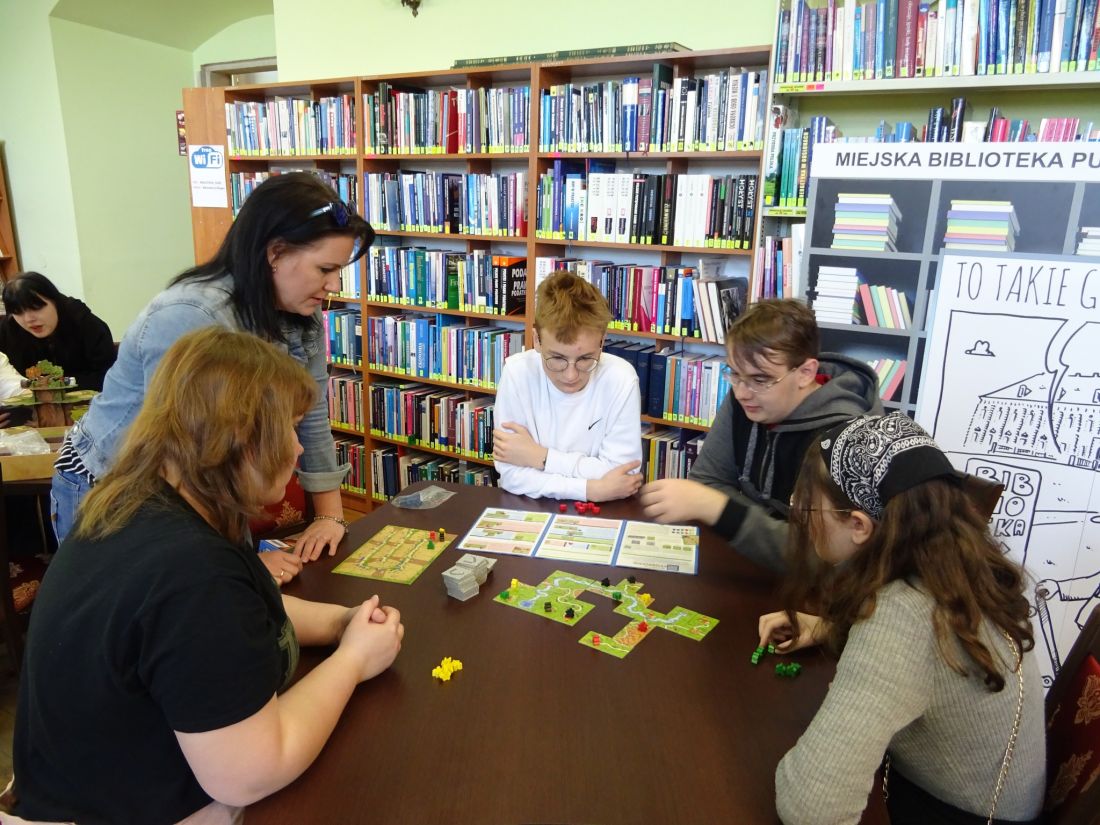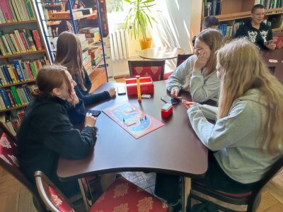 Uczniowie klasy 1RA Technikum Reklamy wzięli udział w zajęciach zorganizowanych przez Miejską Bibliotekę Publiczna w Żaganiu w ramach. Celem zajęć była promocja biblioteki poprzez gry planszowe, które od kilku lat na całym świecie przeżywają ogromny renesans. Spotkanie przy planszówkach, pokazało, że jest to doskonały sposób na spędzanie wolnego czasu. Rozgrywki wyzwoliły w nas logiczne myślenie, wzmogły koncentrację i a także zdrową rywalizację, pobudziły wyobraźnię i kreatywność. Czas spędzony na wspólnej zabawie minął bardzo szybko, a taka forma rozrywki przypadła wszystkim do gustu. Wśród młodzieży panowało ogólne rozbawienie, słychać było wybuchy śmiechu i okrzyki radości ze zwycięstwa. Było głośno, ale bawiliśmy się wspaniale!