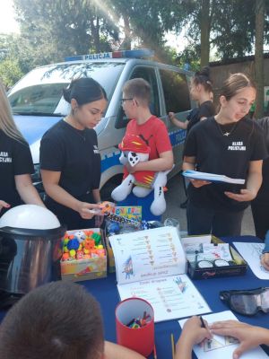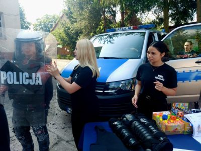 W piątek, 7 czerwca, uczennice kl. III Liceum Ogólnokształcącego z Edukacją Policyjną w ZSTiL w Żaganiu: Natalia Dublicka, Katarzyna Chylińska, Weronika Omilanowicz i Karolina Potępa uczestniczyły w działaniach edukacyjnych przygotowanych przez Komendę Powiatową Policji w Żaganiu. Podczas festynu rodzinnego w Specjalnym Ośrodku Szkolno-Wychowawczym w Żaganiu oraz festynu wojskowego w Klubie Garnizonowym w Żaganiu uczennice pomagały policjantom w prowadzeniu konkursów i quizów dla dzieci oraz pokazach policyjnego sprzętu.