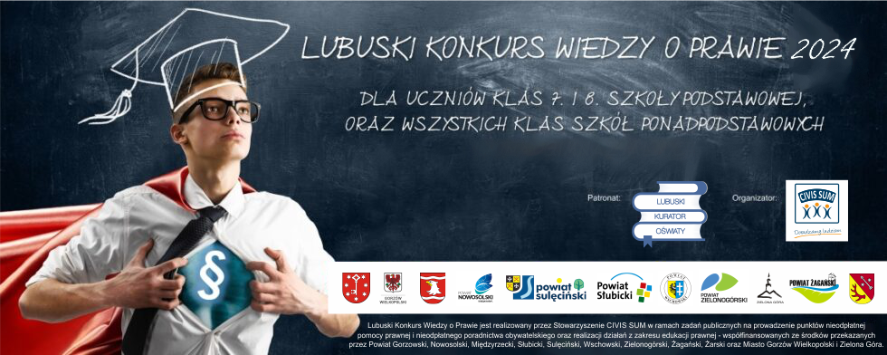 A zwycięzcą etapu wojewódzkiego Lubuskiego Konkursu Wiedzy o Prawie został Aleksander Kaczor z powiatu wschowskiego, uczeń 1 Liceum Ogólnokształcące we Wschowie (klasa 4a) zdobywając maksymalną liczbę pkt. (30 pkt.) w najlepszym czasie.