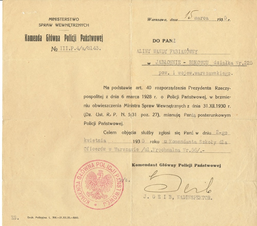 W tym roku szkolnym bohaterką pracy konkursowej, którą wybrały nasze uczennice była posterunkowa Alina Fabian, która wstąpiła do służby w Policji Państwowej w 1934 roku. Uczennice klasy policyjnej nad zadaniami konkursowymi pracowały od początku tego roku szkolnego. Najpierw zbierały informacje (opracowania, dokumenty, zdjęcia) o policjantce z XX-lecia międzywojennego, napisały jej biogram, stworzyły film o swojej bohaterce, znalazły i opisały miejsca pamięci dotyczące Aliny Fabian i przeprowadziły „żywą lekcję historii” dla rówieśników z LO w Żaganiu, aby przekazać zdobytą wiedzę o ciekawej służbie funkcjonariuszki Policji Państwowej.