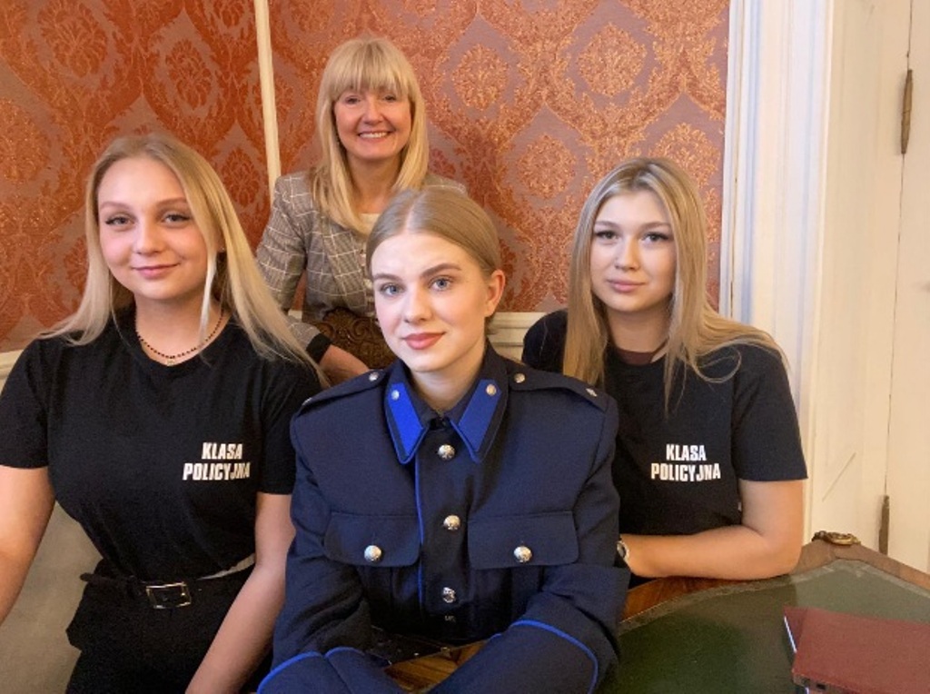 30 maja nasze maturzystki z klasy policyjnej: Iwona Bodak, Wiktoria Stefańska i Nikola Świec nagrywały krótki film prezentujący postać policjantki z okresu XX-lecia międzywojennego Aliny Fabian, która pełniła służbę w Urzędzie Śledczym w Warszawie. Film i biogram o wybranej przez uczennice funkcjonariuszce Policji Państwowej to jedno z trzech zadań do Ogólnopolskiego Konkursu pn. „Policjanci w służbie historii”. Na potrzeby filmu postać policjantki Aliny Fabian zagrała Nikola Świec, która miała na sobie replikę munduru policyjnego sprzed II wojny światowej. Uczennice nagrywały film w pomieszczeniach Żagańskiego Pałacu Kultury. Zadania konkursowe (wybór bohatera, znalezienie miejsc pamięci, przeprowadzenie żywej lekcji historii dla rówieśników) uczennice realizowały przez kilka miesięcy. Teraz są już na finiszu.