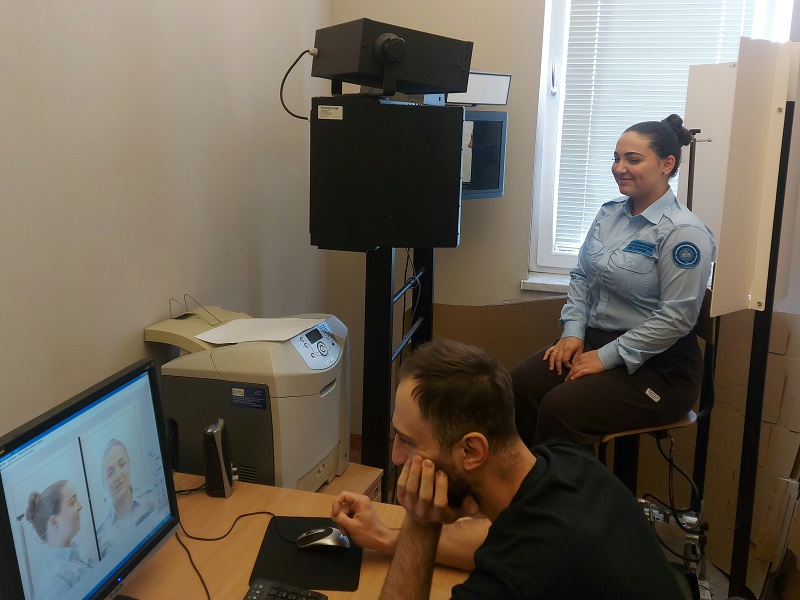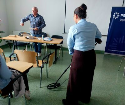 W drugiej części spotkania uczniowie przeszli do pomieszczeń wydziału dochodzeniowo-śledczego, aby zobaczyć specjalistyczne pomieszczenie, wyposażone w urządzenia do utrwalania wizerunku i innych danych identyfikacyjnych (do rejestracji i robienia zdjęć osób podejrzanych).