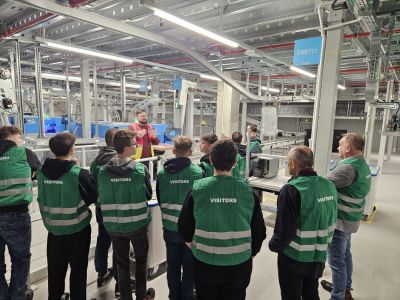 Uczniowie i nauczyciele mogli zapoznać się z profilem działalności zakładu i rozwiązaniami technicznymi a dyrektor Zbigniew Stebelski wraz z wicedyrektorem Arkadiuszem Wołczkiem porozmawiać o współpracy firmy ze szkołą.