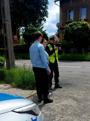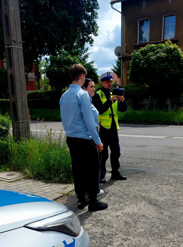 Uczniowie klasy 3 LP Liceum Ogólnokształcącego z Edukacją Policyjną z naszej szkoły uczestniczyli w lekcji w terenie i obserwowali pracę policjantów Wydziału Ruchu Drogowego Komendy Powiatowej Policji w Żaganiu. Uczniowie zobaczyli między innymi w jaki sposób policjanci dokonują pomiaru prędkości pojazdów i w jaki sposób zatrzymują kierujących do kontroli drogowej. Z bliska mogli obserwować kontrolę stanu technicznego zatrzymanego auta i sprawdzenie stanu trzeźwości kierowcy. Uczniowie zobaczyli też urządzenia, które na co dzień są wykorzystywane przez policjantów ruchu drogowego, a także radiowóz i nieoznakowany pojazd służbowy z wideorejestratorem.