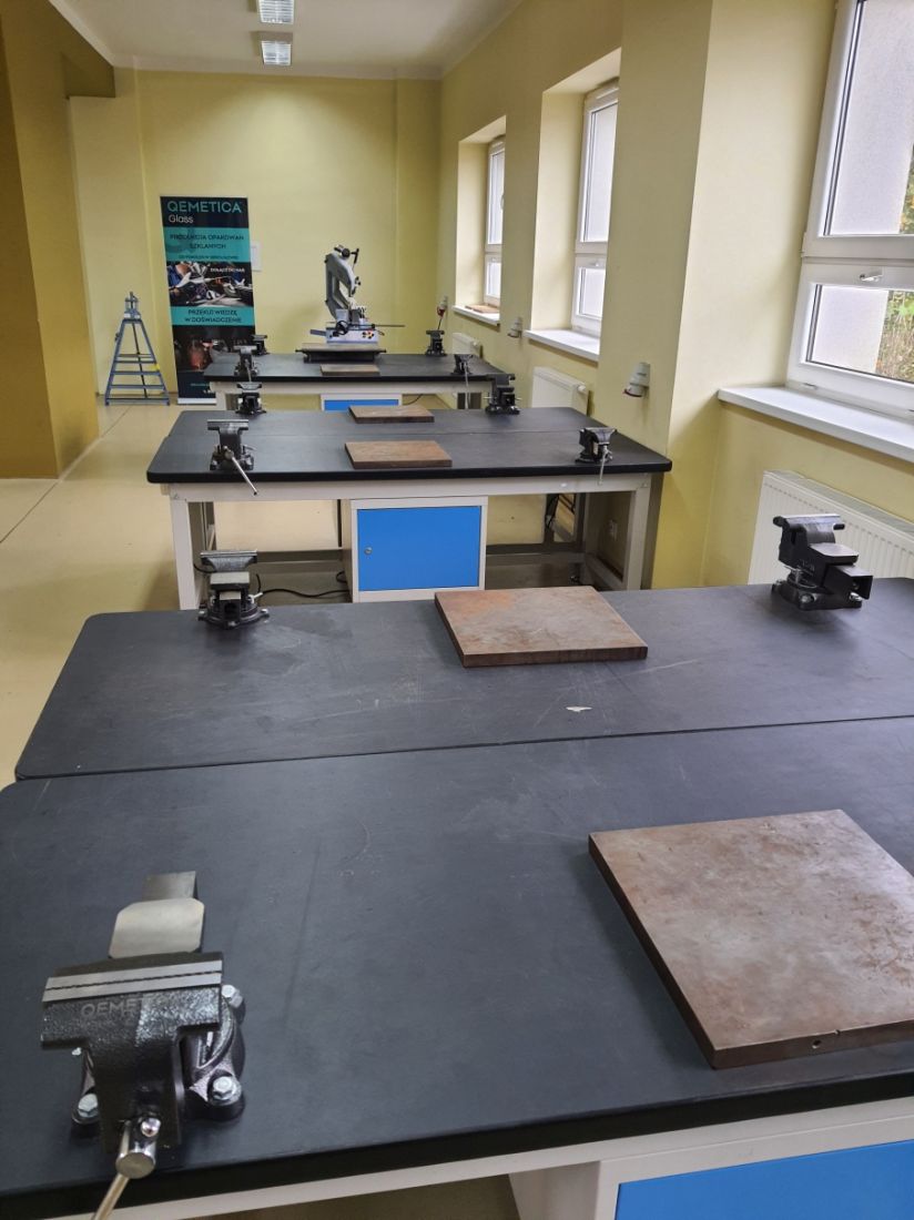 Podczas obchodów Erasmus Days, gościliśmy w naszej szkole przedstawicieli pracodawców współpracujących z naszą placówką. Jedną z firm, która aktywnie działa w tym obszarze jest zakład produkujący opakowania szklane, QEMETICA Glass z Iłowej. W ramach wsparcia otrzymaliśmy 6 dużych imadeł o szerokości 150 mm. Przekazane materiały pozwoliły na uruchomienie dodatkowych stanowisk w nowej sali obróbki ręcznej, co znacząco wpłynie na samodzielną pracę uczniów.