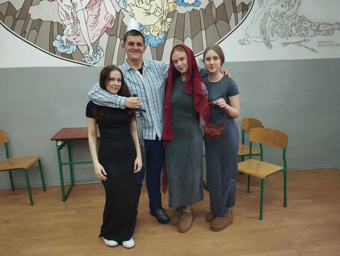 W ramach promocji czytelnictwa, uczniowie kl. 2 LO i 2 LB wcielili się (w czasie zajęć z języka polskiego i nie tylko) w wybranych bohaterów literackich. Najchętniej sięgali po utwór J. Słowackiego pt. „Balladyna”, jednak kreatywność uczniów nie zna granic – wśród przedstawionych bohaterów pojawił się również Rodion Raskolnikow – bohater „Zbrodni i kary” czy Sherlock Holmes – tytułowy bohater powieści A. C. Doyle’a. Nie zabrakło również ponadczasowych bóstw z „Mitologii” J. Parandowskiego. Jak się zatem okazuje – duch czytelnictwa w młodzieży wciąż żywyJ