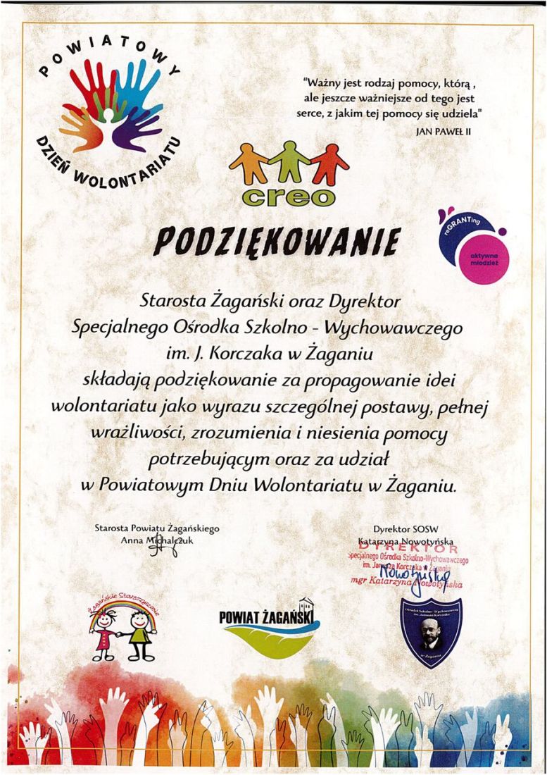 Uczniowie naszej szkoły wraz z opiekunem Szkolnego Klubu Wolontariatu uczestniczyli w uroczystych obchodach Powiatowego Dnia Wolontariatu, które odbyły się 5 grudnia 2024r. w Żagańskim Pałacu. Uczniowie przygotowali i przedstawili prezentację dotyczącą działalności SKW w ZSTIL. W trakcie kreatywnych warsztatów młodzież wykonała ozdoby świąteczne, które zostaną wystawione podczas kiermaszu świątecznego z przeznaczeniem na potrzeby podopiecznych Żagańskiego Stowarzyszenia Uśmiech Dziecka.