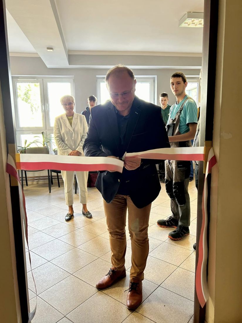 W przekazaniu uczestniczyli starosta Pani Anna Michalczuk, dyrektor szkoły Pan Zbigniew Stebelski oraz Pan Maciej Reczuch, członek Zarządu DRINGENBERG Polska.