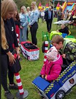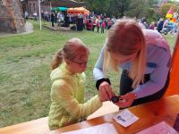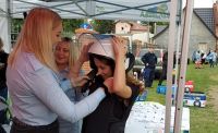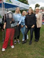 W niedzielę, 19 września br. w Żaganiu odbył się festyn parafialny przy kościele św. Krzyża. Na festynie swoje stoisko edukacyjno-informacyjne skierowane dla dzieci i młodzieży wystawili m.in. żagańscy policjanci, strażnicy miejscy i miejska komisja rozwiązywania problemów alkoholowych. Podczas festynu uczennice kl. III PP Liceum Ogólnokształcącego z Edukacją Policyjną w ZSTiL w Żaganiu: Kinga Rydzewska, Martyna Pacześna, Wiktoria Stefańska i Nikola Świec pomagały policjantom i strażnikom w działaniach edukacyjnych. Uczennice uczyły dzieci zasad bezpieczeństwa na przenośnym miasteczku ruchu drogowego, przygotowywały pamiątkowe karty „pobierając” od dzieci odciski palców, pokazywały sprzęt policyjny,czuwały nad konkursem plastycznym dla najmłodszych dzieci.
