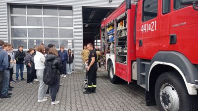 Podczas pobytu w jednostce uczniowie zapoznali się z najnowszym sprzętem przeciwpożarowym i ratunkowym. Uczestniczyli także w pokazie ratownictwa medycznego oraz mogli sami poćwiczyć na fantomie resuscytację krążeniowo-oddechową.