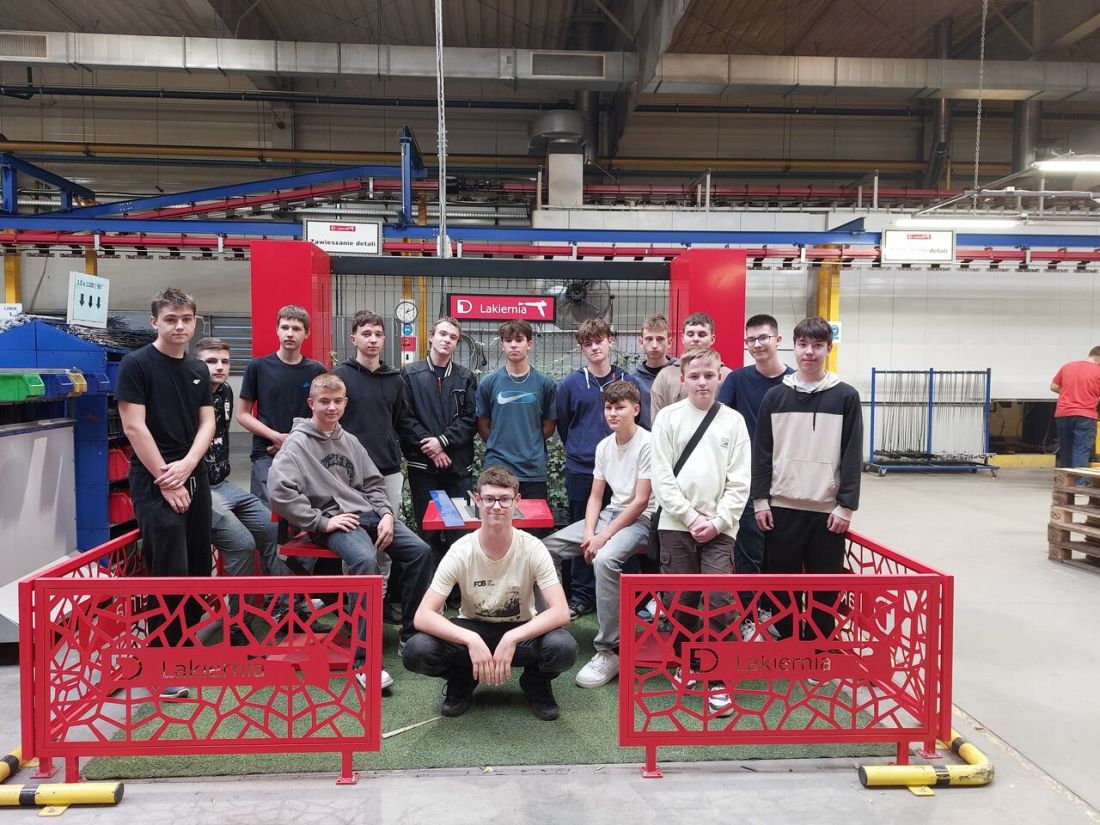 We wtorek (8.10.2024) i czwartek (10.10.2024) uczniowie klasy drugiej technikum mechatronicznego uczestniczyli w wycieczce międzyprzedmiotowej do zakładu pracy DRINGENBERG Polska Sp. z o.o. W trakcie wycieczki nasi uczniowie pod opieką p. Agnieszki Pisarczyk i p. Zdzisława Kapińskiego mieli możliwość zapoznania się z nowoczesnym parkiem maszynowym jak i profilem działalności zakładu pracy. DRINGENBERG jest wiodącym zakładem w Powiecie Żagańskim w wysokotechnologicznej obróbce metali. Jest producentem szerokiej gamy metalowych wyposażeń warsztatowych oraz elementów do zabudowy pojazdów serwisowych. Należy do światowego koncernu Würth, która w swoich procesach produkcyjnych korzysta z najnowocześniejszych maszyn i opiera się na najlepszych rozwiązaniach, jakie oferuje współczesna technologia w przypadku obróbki metali. W trakcie zwiedzania uczniowie przechodząc przez poszczególne etapy procesu produkcyjnego zapoznali się ze specyfiką obróbki metalu. Od surowego półfabrykatu w postaci arkusza blachy po gotowy wytwór w postaci elementów wyposażenia współczesnego warsztatu mechanicznego. Zwiedzanie rozpoczęło się od działu wykrawarek sterowanych numerycznie, następnie giętarek CNC, działu spawania i zgrzewania, gdzie produkt nabierał ostatecznego kształtu zgodnego z założonymi normami. W dziale lakierni proszkowej uczniowie zapoznali się z technologią i procesem lakierowania proszkowego. Na zakończenie uczniowie zobaczyli kabiny pracujące w cyklu automatycznym z wykorzystaniem robotów. Podczas wizyty uczniowie mogli spotkać absolwentów technikum mechatronicznego i mechanicznego pracujących na obrabiarkach sterowanych numerycznie z wykorzystaniem sterowników programowalnych PLC.