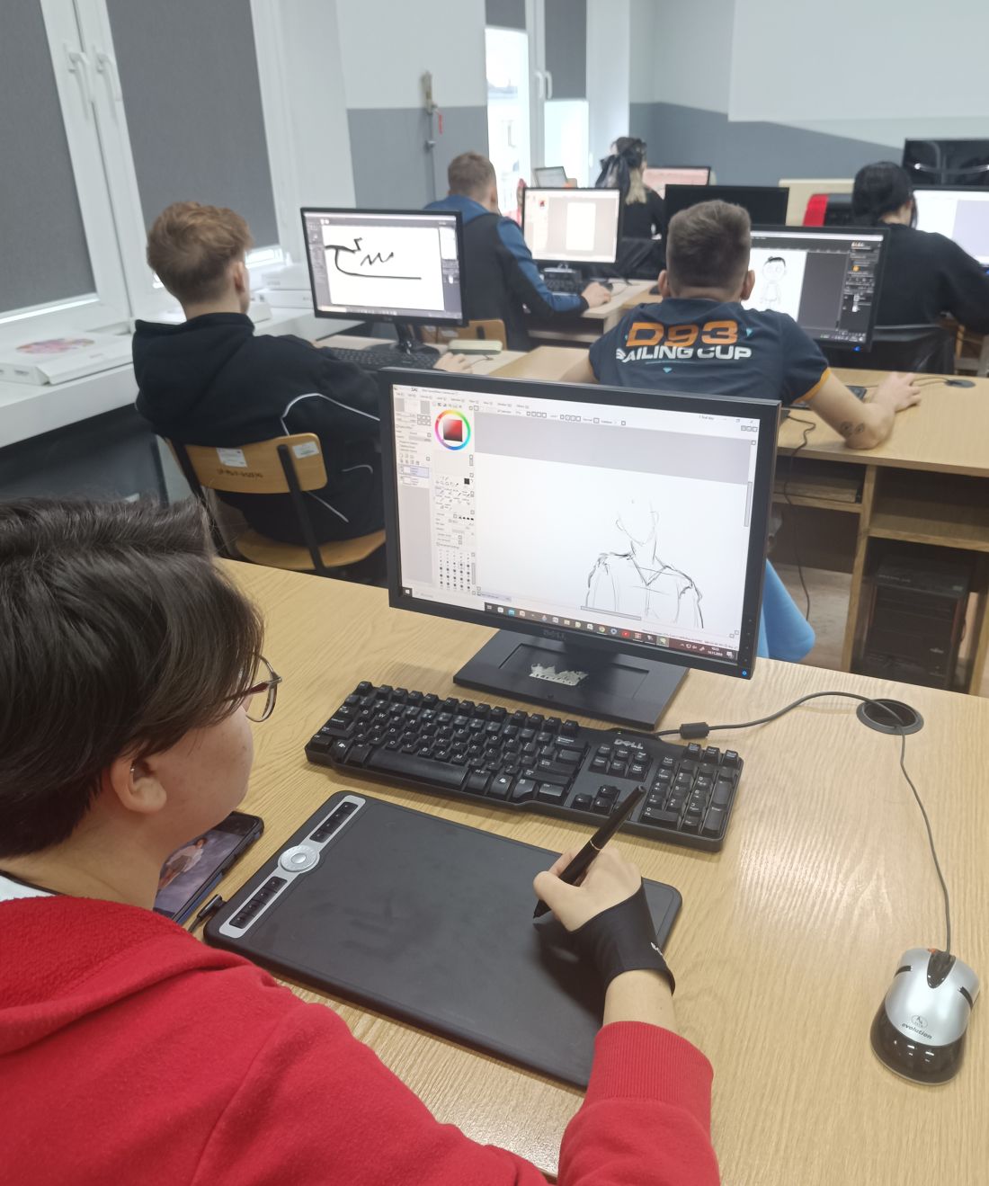 Klasa technikum reklamy (4RE)miała okazję wypróbować nowy sprzęt, który udało nam się zdobyć dzięki funduszom unijnym w programie Erasmus+. Piórkowe tablety graficzne pozwolą naszym uczniom rozwijać swoje umiejętności zdobyte podczas zagranicznych praktyk zawodowych. Klasy technikum reklamy będą mogły korzystać także z gimbala, plotera, gilotyny oraz tła do robienia zdjęć. Dzięki nowym sprzętom upowszechnianie rezultatów projektów będzie jeszcze prostsze i bardziej profesjonalne.